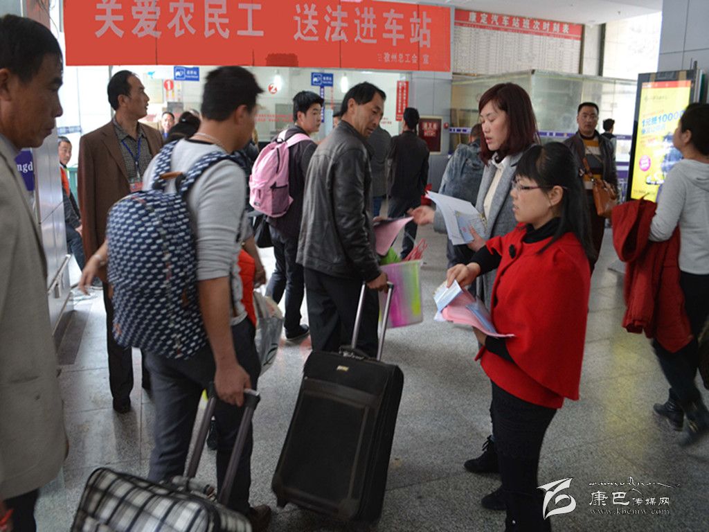 本網(wǎng)訊(宋華玉 記者 秦松 文/圖)“這個資料太實用了,讓我們可以了解自己的權(quán)益有哪些、勞動合同書是怎樣的。”當(dāng)在康定汽車站內(nèi)的農(nóng)民工拿到由州總工會發(fā)放的法冶宣傳資料時,他們?nèi)缫曊鋵毎愕卣J(rèn)真閱讀著宣傳資料,或小心翼翼地把資料裝進(jìn)行李中。4月5日至4月13日,州總工會在康定汽車站開展了“關(guān)愛農(nóng)民工、送法進(jìn)車站”法治宣傳活動,正式啟動了“學(xué)雷鋒、慶五一”服務(wù)職工(農(nóng)民工)系列活動,拉開了州總工會2015年法制宣傳活動的序幕。