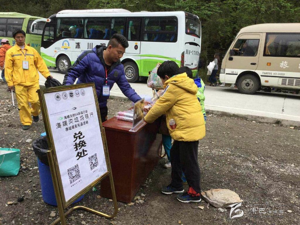 “亂丟垃圾等不文明現(xiàn)象,工作人員看見了會及時勸阻,然后會幫他們撿起來,再扔到垃圾桶里。”景區(qū)營銷處負(fù)責(zé)人丁海明告訴記者,為杜絕游客隨意丟棄垃圾的行為,海螺溝景區(qū)建立“垃圾銀行”,游客回收垃圾,可以兌換精美禮品。