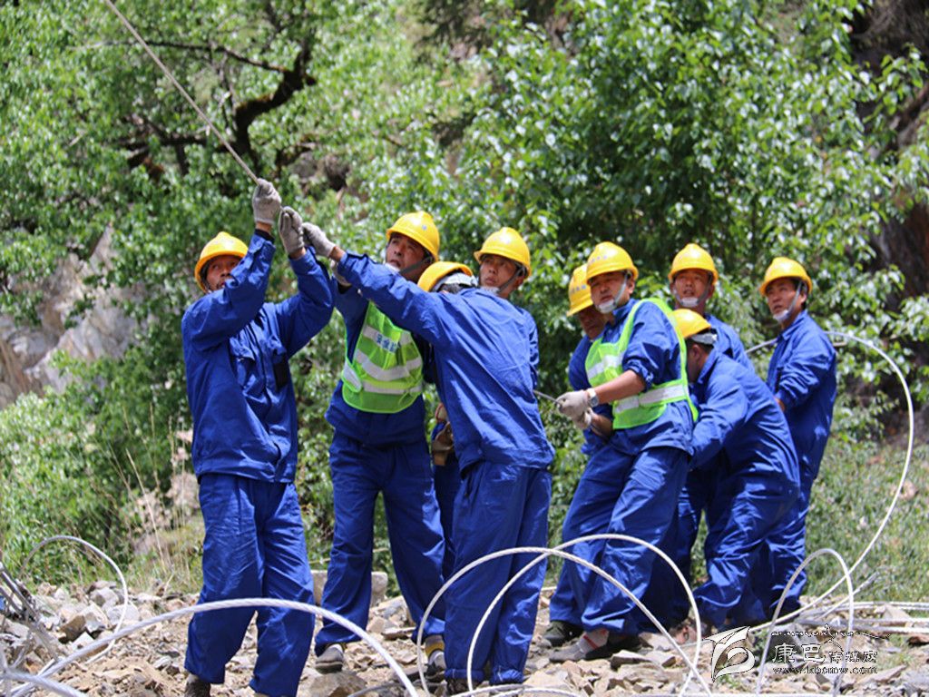 “辛苦”二字同樣印在工程管理者的工作中。手握對講機、身穿工裝的工程項目負責人龍森,此刻正頂著烈日在工地對一位工人叮囑施工事項。龍森是甘孜電力建設有限公司的工程技術人員,他對工程管理非常嚴格,如果工程進度稍慢點,他就會焦急萬分??擅棵靠匆姽と藗冺斨胰?、冒著風雨加班加點趕工程進度時,龍森的心里也特別不是滋味。對這項工程的不易龍森深有體會。架桿初期,有些路段山坡土質松軟,一遇到下雨就容易滑坡塌方,為了不影響工程進度,龍森和工友們常常要一邊做“修路工”的工作一邊做“架桿工”的工作。龍森說:“最苦的是,這里有些路段車輛根本無法進入,一根電桿重1.2噸,要靠十多名工人用繩索和木頭抬進工地。德差鄉(xiāng)距離縣上有170多公里,單程就要4小時,工程緊的時候一周要往返縣上兩三趟。還記得有一次車胎在海拔近5000米的呷布科山上爆了,山上手機沒有信號,得不到救援,餓了我們就在山上吃點自帶的干糧,等了近半天才等到一位騎摩托車的老鄉(xiāng)路過,回到休息地的時候已經是半夜兩點多了。”說到這里,龍森無奈地搖了搖頭。世上無難事,只怕有心人。龍森說,這段路線的電桿已經全部立起來了,現(xiàn)在只剩下架線的工作。一定要搶在月底之前為這兩個村通上電。