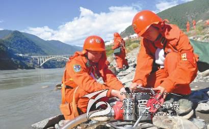 圖為徐驊(右)和戰(zhàn)士在架設(shè)水泵準備滅火。 (武警四川省森林總隊甘孜州支隊供圖)