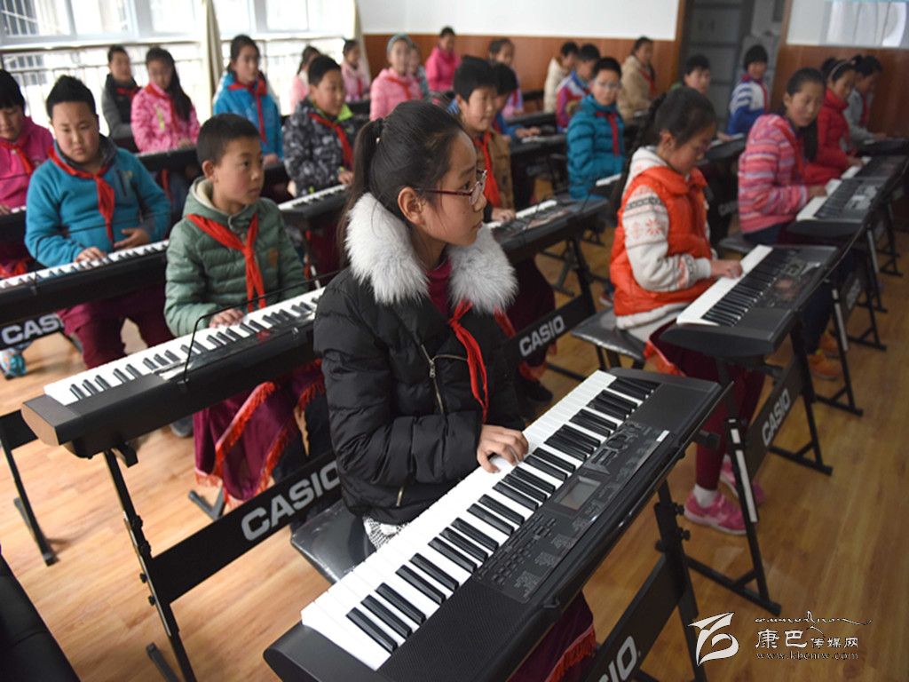 康定市東大街小學的學生在學習電子琴。