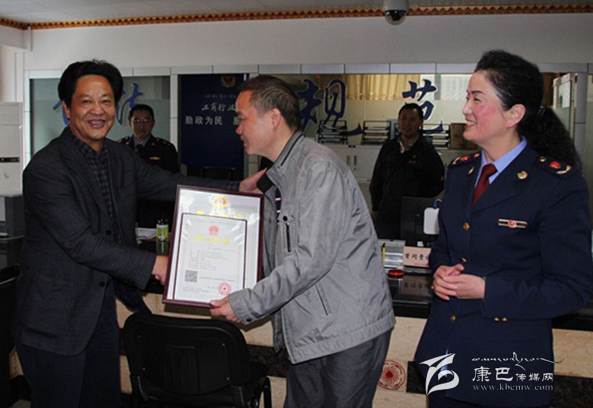 州委常委、農(nóng)工委主任楊凱頒發(fā)我州首張“三證合一、一照一碼”營業(yè)執(zhí)照。