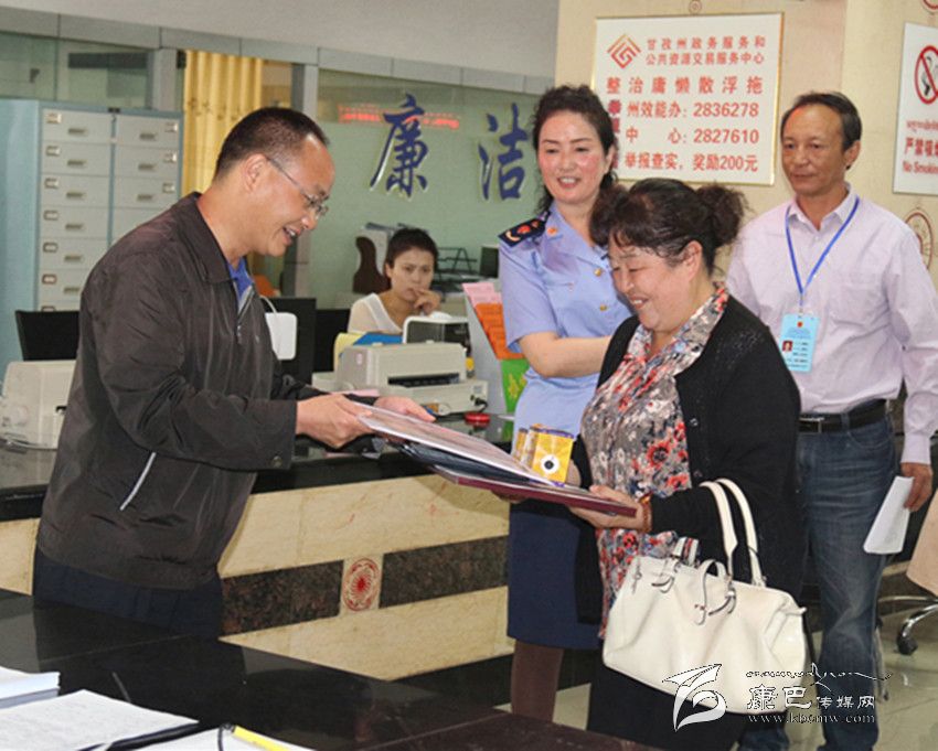 州政府副州長何飚為我州首次推行“一窗受理 , 三證統(tǒng)發(fā)”頒證。