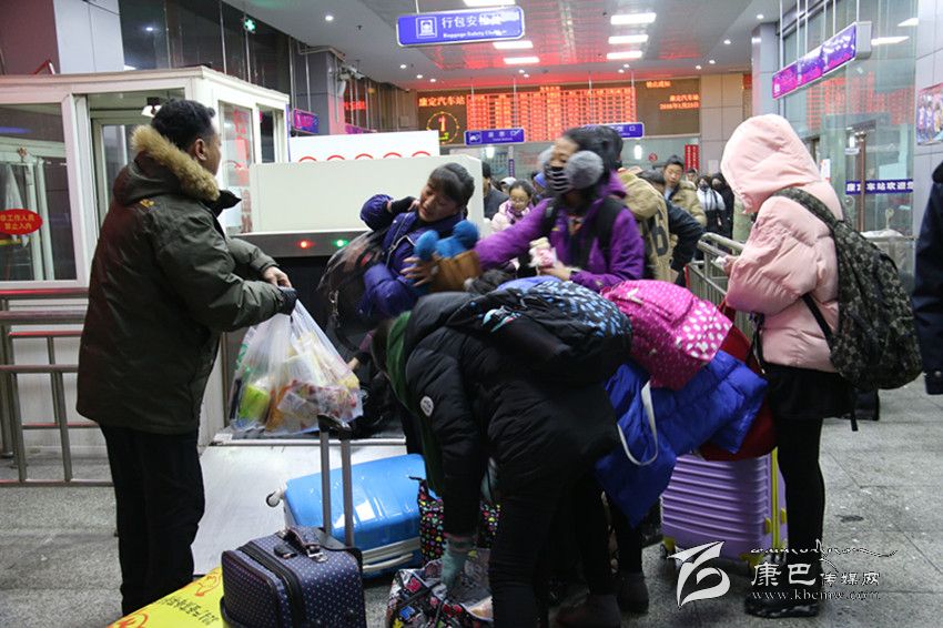 23日晚,康定下了一場鋪天蓋地的大雪,氣溫驟降,但這并沒有影響人們對(duì)回家的渴望。記者一進(jìn)汽車站就看見購票窗口、行李檢查口、車票驗(yàn)核口井然有序的排滿了購票的旅客。