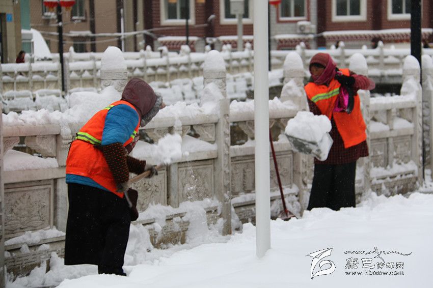 州公安局共產(chǎn)黨突擊隊正在東大街除雪。