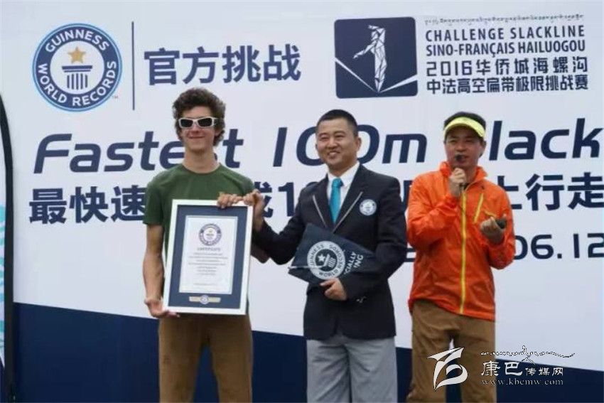 6月11日“2016華僑城海螺溝高空扁帶極限挑戰(zhàn)賽”上,法國(guó)選手Nathan Paulin以零失誤的成績(jī)成功完成了海拔3600米、長(zhǎng)度820米高空扁帶極限挑戰(zhàn),完成了一次驚艷視覺、顛覆想象、燃爆心跳的極限之旅,創(chuàng)造了世界最高海拔,最長(zhǎng)距離的高空扁帶運(yùn)動(dòng)的東方奇跡,被譽(yù)為“北緯30°的云端行走”。次日,法國(guó)選手Lucas Milliard在海螺溝大橋下以1分59秒73的成績(jī)創(chuàng)造了最快速度完成100米扁帶上行走吉尼斯世界紀(jì)錄,成為這項(xiàng)吉尼斯世界紀(jì)錄的締造者。從此,他的名字隨著中國(guó)四川甘孜海螺溝一起被整個(gè)世界所記錄。