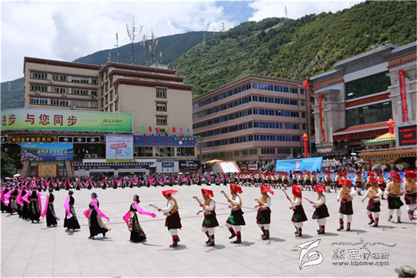 表演在巴塘縣舞之中拉開帷幕,上百名身著盛裝的男女演員用歡快的舞步、飄揚的云袖向康定市民和四方來客展現(xiàn)了“弦子之鄉(xiāng)”的淳樸熱情和如畫風(fēng)光。演員們精彩、投入的表演贏得了現(xiàn)場觀眾的陣陣好評。分別表演完各自的縣舞之后,三縣人馬一同跳起了甘孜州州舞,在熟悉的《康定情歌》旋律之中,男男女女、老老少少300余人盡情舞蹈,時而大步流星、時而小心翼翼、時而熱情奔放、時而掩面含羞,黑白、紅黃、藍綠各色服裝隨著音樂節(jié)拍交相輝映,繪制成一幅團結(jié)友愛的和諧圖景。