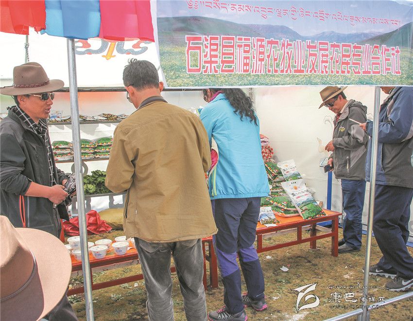 8月3日是石渠縣帳篷節(jié)的最后一天,清晨的陽光透過炊煙傾灑在草原千余頂帳篷上,40多歲的藏族漢子嘎戎從生活區(qū)的帳篷里出來,走向不遠的太陽部落帳篷商貿(mào)城集市。那里安扎著400多頂帳篷,有商戶370家,周邊還有50多個流動的小商販。嘎戎所在的石渠縣福源農(nóng)牧業(yè)發(fā)展農(nóng)民合作社就是其中的一家參展商。從帳篷節(jié)開始,嘎戎就和其它5個人輪流值守這個他們倍加珍惜的展位,那是他們合作社自今年4月份成立至今第一次在如此重大的場合中露面,經(jīng)過這次檢驗,他們對自己的產(chǎn)品更加有信心。駐真達村第一書記祝修濤告訴記者,短短一個星期,合作社展售的糌粑、人參果、奶渣近2000斤,銷售額達4萬多元。這個農(nóng)民專業(yè)合作社以扶貧為己任,從建設種植基地到水磨房加工投入了200多萬元,全村50戶村民參與,合作社將原料統(tǒng)一發(fā)給村民加工,再統(tǒng)一收起來,統(tǒng)一包裝銷售。祝修濤說,社里的產(chǎn)品剛開始只是在當?shù)爻鍪郏m然投入大但產(chǎn)量不敢做大,這次有這個平臺得到了市場的認可,他們對合作社的發(fā)展充滿了信心。祝修濤,作為該村的第一書記,他要帶領(lǐng)著這個合作社好好規(guī)劃、大干一場。