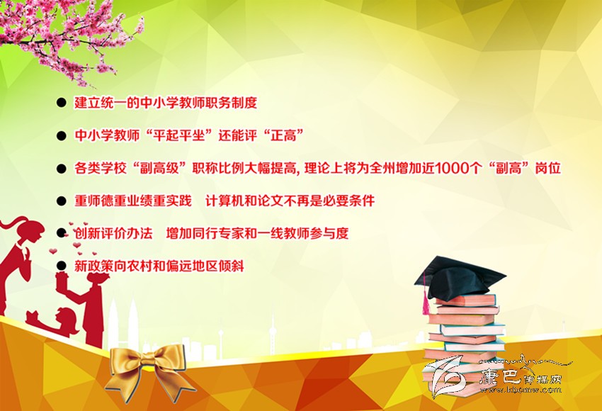 據(jù)李國平介紹,按目前全州12000余名專任教師的總數(shù)來算,此次“副高級”職稱比例調(diào)整,理論上將為全州增加近1000個 “副高”崗位,同時還會騰出同等數(shù)目的中級職稱崗位,總共會有2000名左右教師的職稱會因此提升。