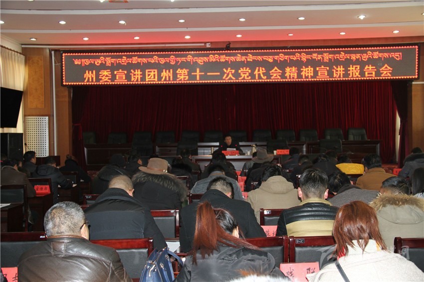 會上,黃虎彪以州委書記劉成鳴在州第十一次黨代會上的報(bào)告為主題,對州第十一次黨代會精神作了系統(tǒng)全面宣講。對會議的基本情況、主要成果、主要內(nèi)容、重要意義作了系統(tǒng)說明,并結(jié)合我州實(shí)際從過去五年我州發(fā)展的主要成果和基本經(jīng)驗(yàn)、當(dāng)前我州面臨的基本形勢、今后五年我州的工作思路和奮斗目標(biāo)、繼續(xù)堅(jiān)持全面從嚴(yán)治黨等方面對黨代會精神作了系統(tǒng)全面解讀。黃虎彪說:過去五年是我州發(fā)展進(jìn)程中綜合實(shí)力提升最快、基礎(chǔ)設(shè)施改善最大、民生改善最好、群眾得到實(shí)惠最多的五年;當(dāng)前面臨的形勢時(shí)隨著國家區(qū)域總體發(fā)展戰(zhàn)略的深入實(shí)施,新一輪西部大開發(fā)政策的全面落實(shí),特別是中央第六次西藏工作座談會出臺支持藏區(qū)經(jīng)濟(jì)社會發(fā)展和長治久安的意見,為我州加快發(fā)展提供了強(qiáng)大的政策支持、項(xiàng)目支持和資金支持;今后五年的目標(biāo)是全面消除絕對貧困,18個(gè)縣(市)全部“摘帽”,1360個(gè)貧困村全部退出,19.74萬貧困人口全部脫貧,貧困人口發(fā)展能力不斷增強(qiáng)。城鄉(xiāng)居民人均可支配收入接近全省平均水平,差距明顯縮小,中等收入人口比重上升。