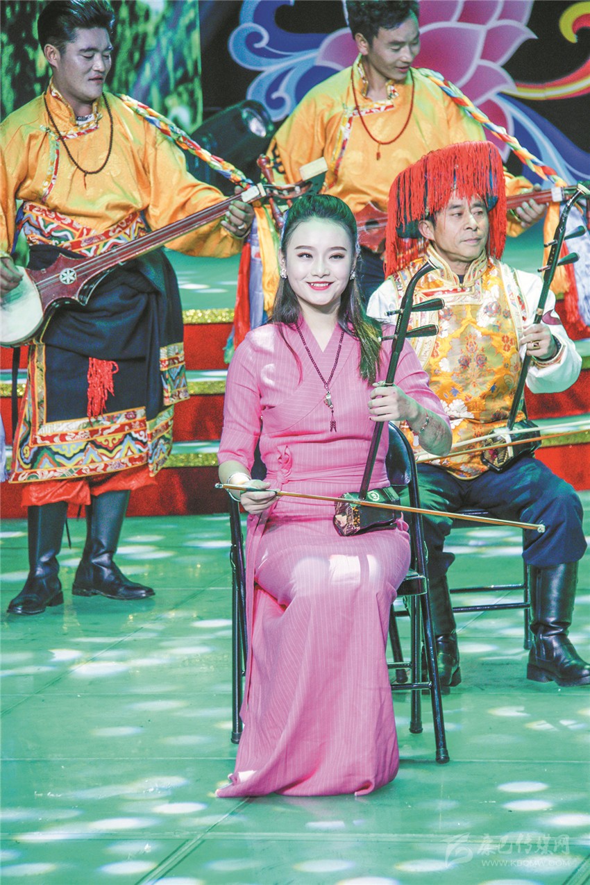 歌曲聯(lián)唱《百花爭艷》,是演出中第一個讓觀眾們大呼過癮的節(jié)目,年僅5歲的澤仁拉姆用一首藏族原生態(tài)歌曲《故鄉(xiāng)》,讓全場觀眾耳目一新。緊隨而來的藏族山歌《家鄉(xiāng)美》、漢族歌曲《和諧大家園》、回族歌曲《花兒與少年》、彝族歌曲《 尼雨尼杰》將音樂的魅力逐級顯現(xiàn),最后在經(jīng)典歌曲《愛我中華》中急速升華。6首歌曲風(fēng)格各異,卻又一氣呵成,不僅集中展示了我州藏、漢、回、彝四個民族的藝術(shù)風(fēng)采,還生動展現(xiàn)了我州各族人民其樂融融、團結(jié)進步的和諧面貌。