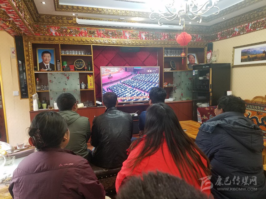 理塘藏族群眾在家中收看省黨代會(huì)開(kāi)幕大會(huì)直播。