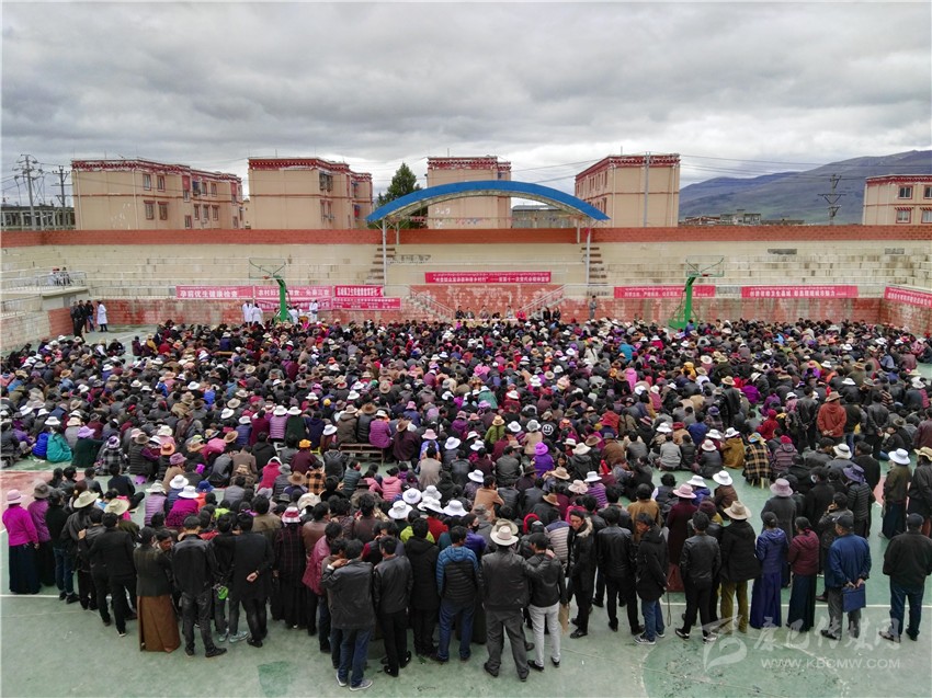 為了聽這場(chǎng)宣講,卡仁呷瑪起了個(gè)大早,帶領(lǐng)30多名在家村民,坐汽車、騎摩托從25公里外的村上趕到鄉(xiāng)政府。雖然宣講會(huì)10點(diǎn)才開始,9點(diǎn)過鄉(xiāng)政府院壩就坐滿了從十個(gè)村趕來的226名牧民群眾。