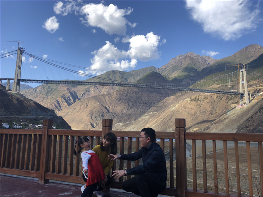 2014年大橋開建,柏國勝夫婦就把家安在了大橋旁的工地,把辛勤汗水融入這片土地,如今3歲的小孩就在當地幼兒園讀書,成為地道的“瀘定人”。