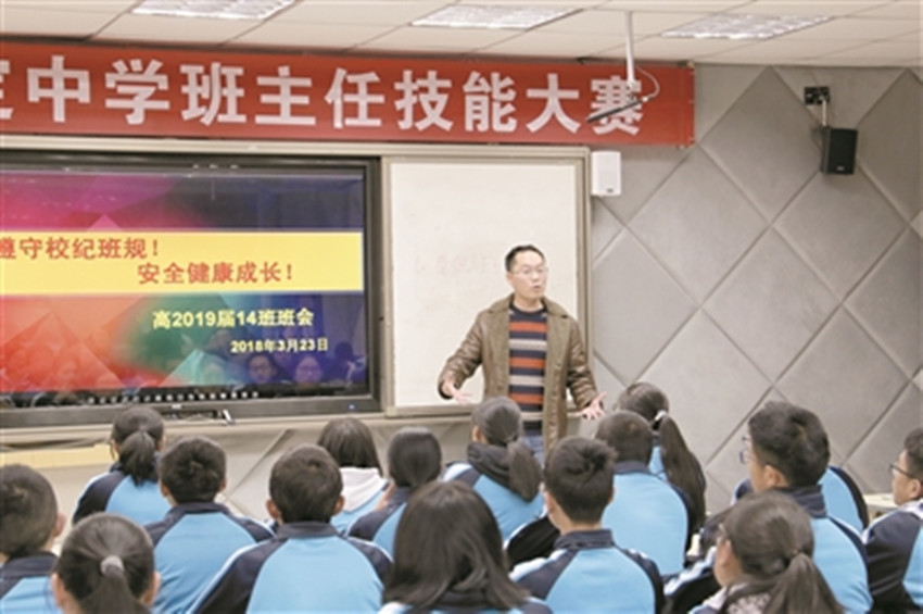 經過評委的認真評判,此次班主任大賽等評出一等獎2人、二等獎4人、三等獎6人。大賽中,學校高初中部全體班主任及部分教師全程進行了觀摩,相關評委還進行了點評。圖為技能大賽現(xiàn)場。