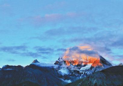 稻城亞丁日映金山。