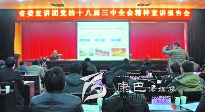 12月25日,省委宣講團(tuán)在海螺溝景區(qū)宣講黨的十八屆三中全會精神,由省委講師團(tuán)教授韓旭作宣講,海螺溝景區(qū)景區(qū)管理局、磨西鎮(zhèn)、新興鄉(xiāng)副科實(shí)職以上干部,21個行政村村兩委班子成員,部份州、縣人大政協(xié)代表,離退休同志代表和三老干部代表,省州屬各派駐機(jī)構(gòu)負(fù)責(zé)人以及部分旅游企業(yè)負(fù)責(zé)人聆聽了報告。圖為報告會現(xiàn)場。(李娟 攝影報道)