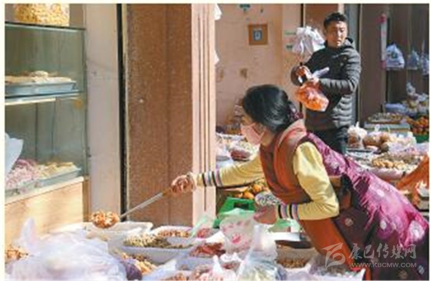 被問及今年購買水果、干果、糖果的感受,金大哥滿臉幸福地說:“高速通車了,外面的新鮮水果運進(jìn)來很方便,我買了點石棉草莓,很新鮮還不貴;我們康定的特色小吃酥油果子也被很多人帶到了外面,我排了十多分鐘的隊,才買到兩包。”
