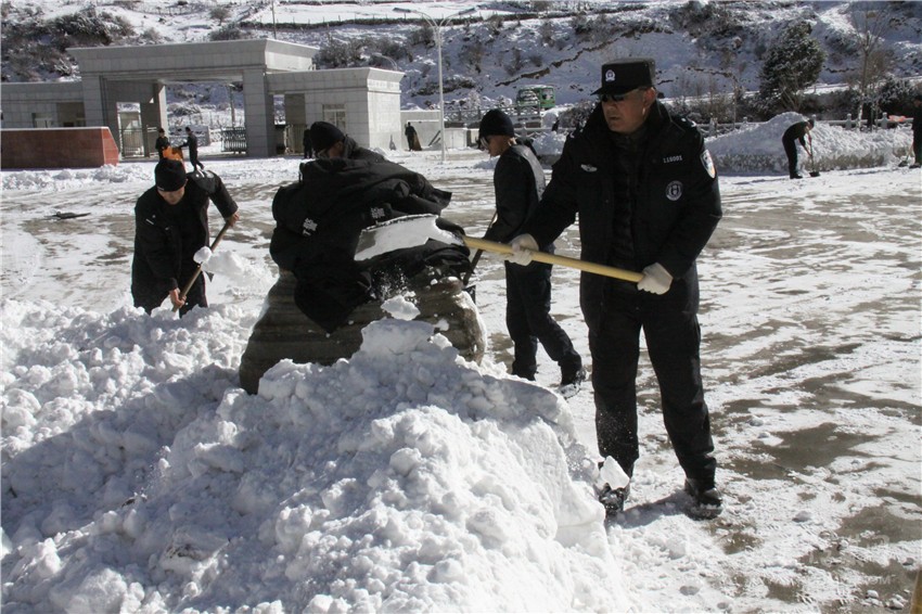 向?qū)W馬帶領(lǐng)干警清除積雪。
