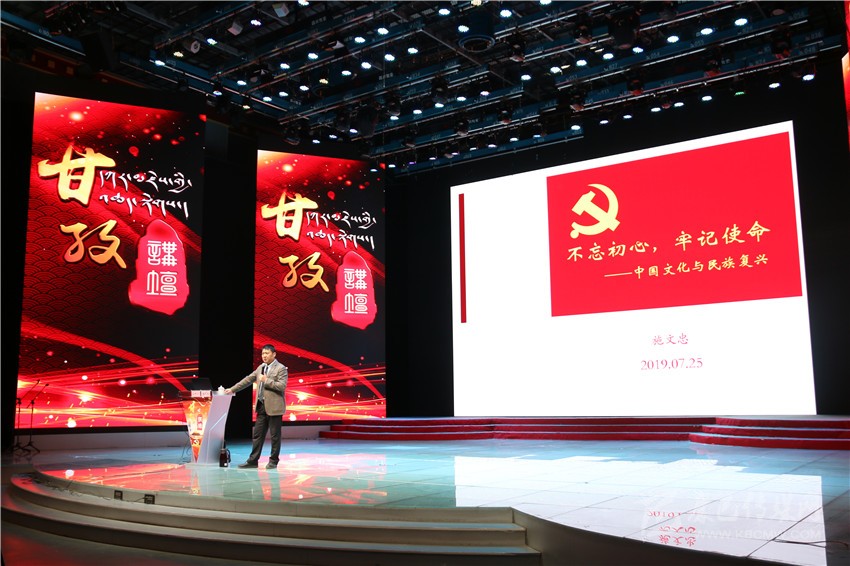 本網(wǎng)訊 7月25日上午,由州委主辦,州委宣傳部、州廣播電視臺(tái)承辦的“甘孜講壇”第二十一期專題講座在州電視臺(tái)文藝演播大廳開講,此次講座專程邀請(qǐng)了文化經(jīng)典的研習(xí)者與傳播者,明倫書院執(zhí)行院長(zhǎng)、成都明倫書院院長(zhǎng)、兼任成都市武候區(qū)社科聯(lián)副主席施文忠專家以《不忘初心、牢記使命——中國(guó)文化與民族復(fù)興》為題,進(jìn)行了以史為鑒、更好前進(jìn)的解讀。州政協(xié)副主席陳洪暴、蔣秀英、阿基布珠等領(lǐng)導(dǎo)以及州級(jí)機(jī)關(guān)部門負(fù)責(zé)人聆聽了講座。