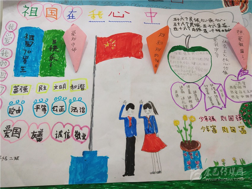 活動(dòng)在該校三至六年級(jí)學(xué)生中開(kāi)展,老師為學(xué)生提供創(chuàng)作所需材料,讓學(xué)生自由想象發(fā)揮,把自己心中對(duì)祖國(guó)的熱愛(ài)躍然紙上。各班精心組織,不到兩個(gè)小時(shí)的時(shí)間,一幅幅主題鮮明、內(nèi)容豐富、色彩明快的手抄報(bào)誕生了,孩子們的作品充滿(mǎn)了對(duì)祖國(guó)深深的愛(ài)與衷心的祝福。何俊鑫 文/圖
