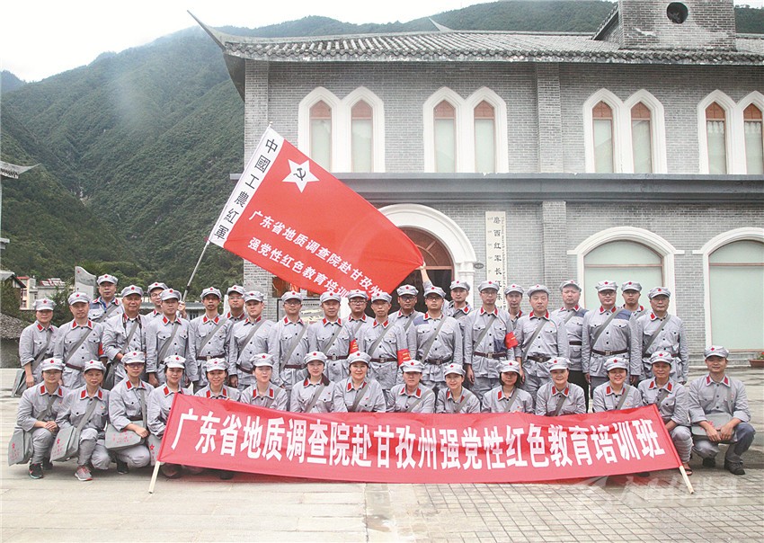 廣東地質(zhì)調(diào)查院紅色黨性教育培訓班在磨西會議紀念館合影。