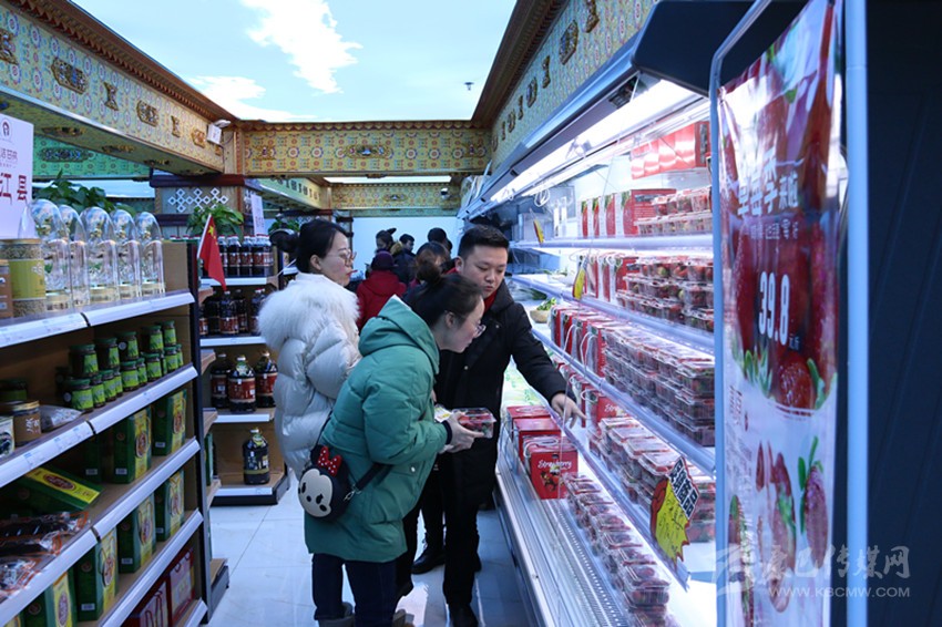 “石渠草莓、理塘番茄、九龍茶葉、康定青稞餅······”12月31日,康定市圣潔甘孜扶貧超市內(nèi)人山人海,當(dāng)天“四川扶貧”產(chǎn)品迎春年貨大集甘孜分會(huì)場(chǎng)活動(dòng)在此拉開帷幕。來自全州18個(gè)縣(市)157家企業(yè)、合作社生產(chǎn)的723種“圣潔甘孜”優(yōu)質(zhì)農(nóng)特扶貧產(chǎn)品吸引眾多市民前來購(gòu)買。