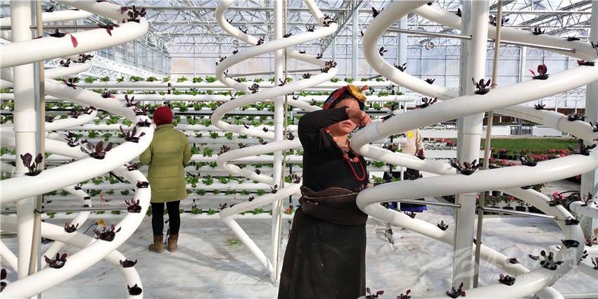 2019年4月13日,當記者走進德格縣中扎科現(xiàn)代農(nóng)業(yè)園區(qū)時,只見一個個大棚整齊排列,猶如營帳,大有沙場點兵的豪邁氣勢。走進大棚,一行行整齊的番茄樹已經(jīng)開出小花,滿園生機歡唱著春之歌。