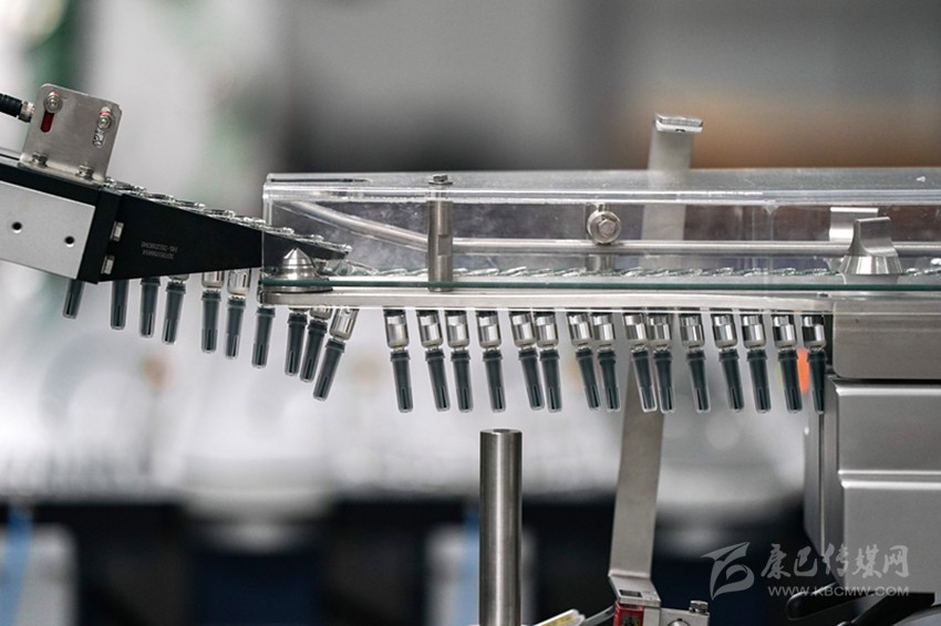 7月8日拍攝的北京科興疫苗生產(chǎn)流水線。