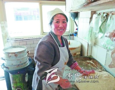 姜瓊芳是雅安漢源人,十幾年前就和親戚一起來(lái)康定打工,她賣過(guò)菜、打過(guò)零工,2010年,有了一點(diǎn)積蓄的姜瓊芳開(kāi)起了一家小吃店,專賣早餐,包子、花卷、饅頭、酥油茶、稀飯,雖是小生意,可也做得紅紅火火。因?yàn)榻偡紴槿藷崆?、?ài)幫忙,做的各類早點(diǎn)味道好、分量足,所以每天早早地就賣完了,還有很多老顧客早上就要來(lái)訂購(gòu)還沒(méi)做好的包子、饅頭。