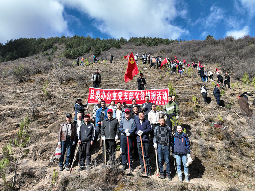 日前,石渠縣開展了“我為黨旗添光彩,全民義務(wù)植樹造林”活動,為生態(tài)石渠建設(shè)再添新綠。