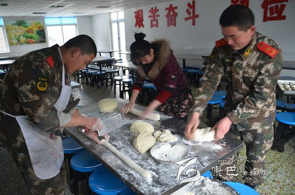 時(shí)值大暑季節(jié)的川西高原依然寒風(fēng)凜冽,一抹朝陽灑在山頂積雪上,散發(fā)出黃白相間耀眼的光芒。此時(shí),工化中隊(duì)廚房里鍋碗瓢盆開始演奏新一天的樂章,幾名炊事員忙來忙去,只見中隊(duì)長杜培峰的妻子李曉霞正蹲在門口幫著洗菜,“小杜跟我說中隊(duì)的炊事員最辛苦,讓這些小伙子炒菜做飯,真是難為他們了……”,四川妹子李曉霞用手擦了擦額頭的汗珠對筆者說。正說著,炊事班長跑過來一把端走李曉霞面前的菜盆:“嫂子,你這么早起來瞎忙活什么???你感冒還沒好呢,快回去休息吧!”