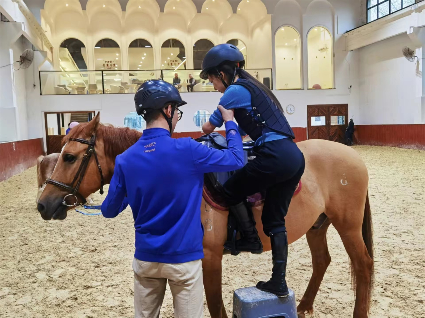 “控韁需要較強(qiáng)的手臂力量,對(duì)于許方燕來說,不僅下肢的力量需要強(qiáng)化,上肢的平衡又頗具難度?!眲傞_始接手訓(xùn)練許方燕時(shí),此前從來沒有帶過特殊人群的教練鄧思成坦言有些頭疼。為了幫助許方燕克服身體障礙控制馬匹,鄧思成不僅為她量身定做了特制的帶有卡扣的韁繩,還為她量身定制了訓(xùn)練計(jì)劃,尤其加強(qiáng)了韁繩脫落等意外情況的訓(xùn)練。