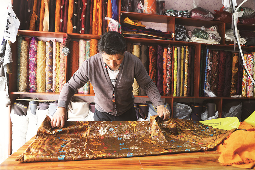 縣城的店鋪開(kāi)業(yè)僅兩年,生意異常火爆,這得益于扎西澤仁對(duì)手工藝的精湛掌握和對(duì)傳統(tǒng)文化的深刻理解。他講究慢工出細(xì)活,從設(shè)計(jì)到裁剪、縫合、熨燙,每一道工序都是純手工制作,這些服飾不僅款式獨(dú)特、工藝精湛,更蘊(yùn)含著豐富的文化內(nèi)涵和歷史底蘊(yùn)。