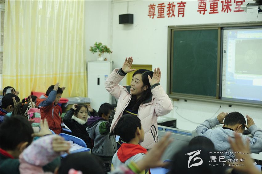 “同學(xué)們,我們再來練習(xí)一下好嗎?”孩子們齊刷刷地隨著音樂又唱又跳,《鵝》、《春眠》、《小雨沙沙地下》三首歌曲之后孩子們興致高漲、喜笑顏開,裴老師一個暫停手勢,教室立刻安靜下來,緊接著就是密集的移動桌椅的聲音,30多張書桌很快又被排放得整整齊齊,整個過程老師沒說一句話,這群六七歲的孩子卻仿佛久經(jīng)訓(xùn)練的士兵反應(yīng)迅速而有序。