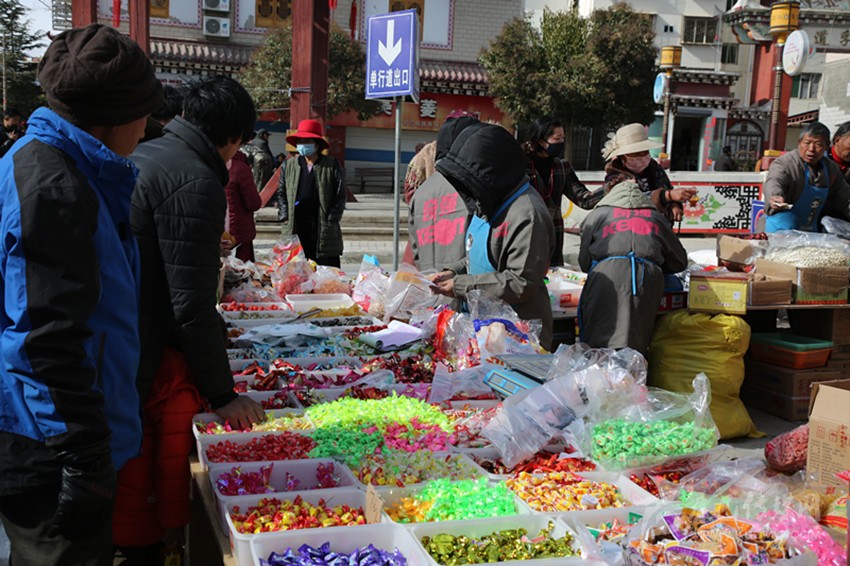 來自甲斯孔鄉(xiāng)的布珠說,年貨買得差不多了,這次不準(zhǔn)備買年貨了,“但這集市很有味道,不買東西來湊湊熱鬧也安逸?!毕癫贾榇蟾缫粯樱芏喔浇遄拥娜藖碲s集,主要是“湊熱鬧”,這接地氣、有鄉(xiāng)土味、有民族風(fēng)的農(nóng)村集市成了大家的休閑空間。