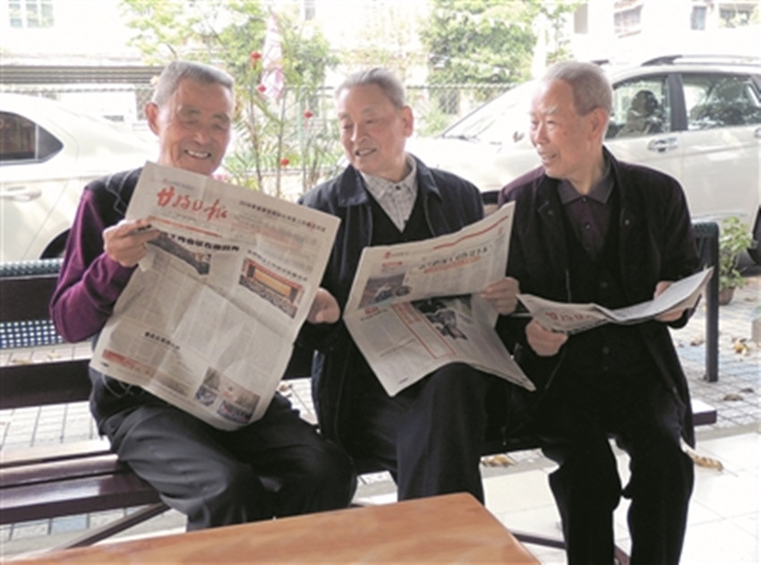 圖為雅安干休所退休干部正在閱讀《甘孜日?qǐng)?bào)》。