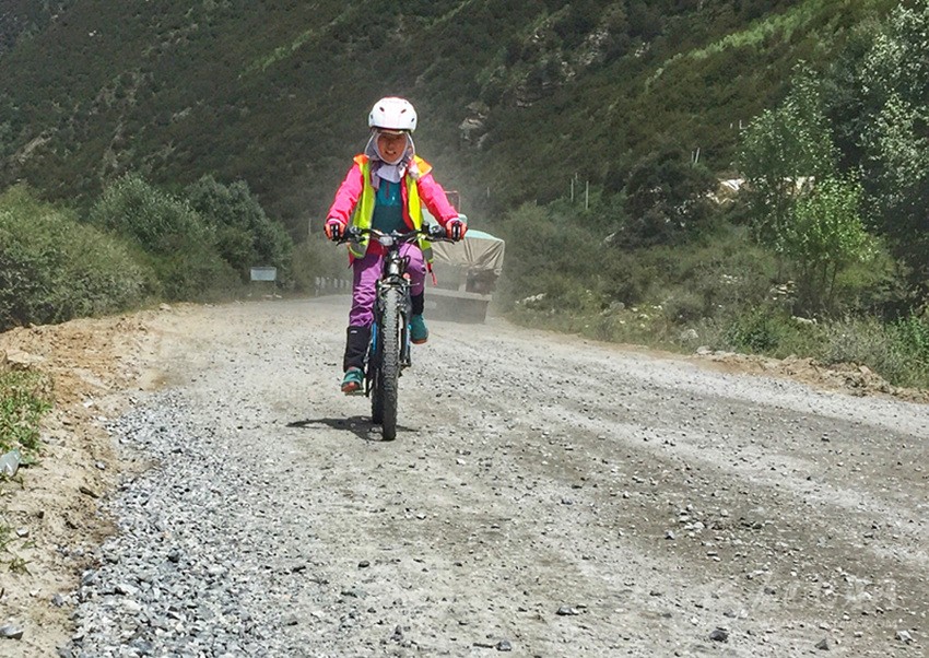 “‘拖兒帶女’騎行進(jìn)藏本不多見(jiàn),更別提‘一個(gè)年僅8歲的小女孩,騎折疊車挑戰(zhàn)川藏線2050公里了!’就我目前所知,這恐怕是國(guó)道318線上的頭一個(gè)!”看到女兒緊隨其后,不多時(shí)也順利抵達(dá)觀景臺(tái),劉志勇言語(yǔ)間頗有些自豪地介紹著——這位川藏線上迄今年齡最小的女性獨(dú)立騎行者。