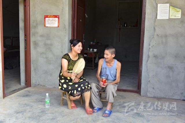 8月15日,南部縣中心鄉(xiāng)漏米巖村周強善新家,周強善與女兒在自家門前擺龍門陣。攝影 張可凡