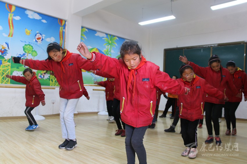 “要跟隨節(jié)拍,注意動(dòng)作協(xié)調(diào)連貫,舞蹈是非常愉悅的享受,要面帶微笑,動(dòng)作不要太僵硬。”在舞蹈室,老師正耐心地糾正孩子們的舞蹈動(dòng)作。老師是縣文化館的專(zhuān)業(yè)演員,成為學(xué)校的舞蹈老師后,她就負(fù)責(zé)全校的舞蹈教學(xué)工作。