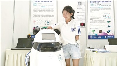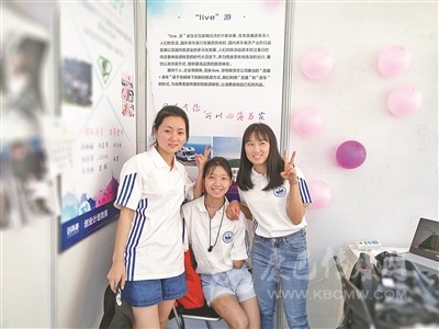 許方燕和隊員在創(chuàng)青春決賽自己展位前合影。