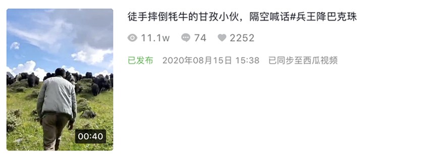 8月3日,這段僅有10秒長的視頻,在抖音短視頻平臺《甘孜日報》康巴傳媒抖音號發(fā)布后,短短一天內(nèi)獲得了800多萬次播放量,200多名網(wǎng)友留言評論,18萬次點贊更是“宣告”其正式成為“網(wǎng)絡(luò)爆款”。