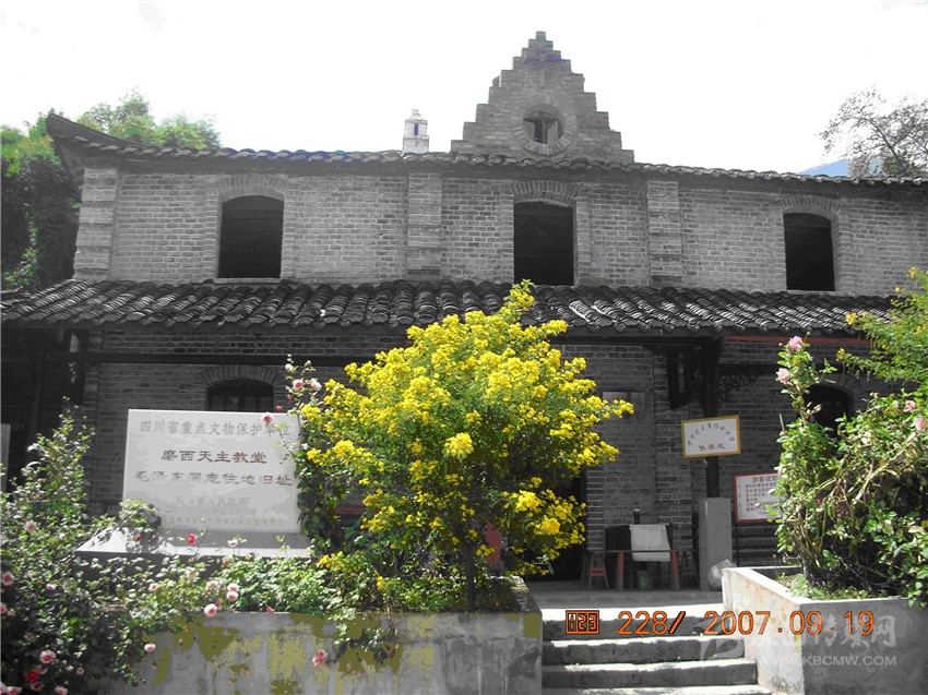 圖為毛澤東住宿地舊址--瀘定縣磨西鎮(zhèn)天主教堂。1935年5月29日傍晚,毛澤東同志隨中央紅軍一軍團(tuán)進(jìn)入磨西,宿營(yíng)天主教堂神甫房。