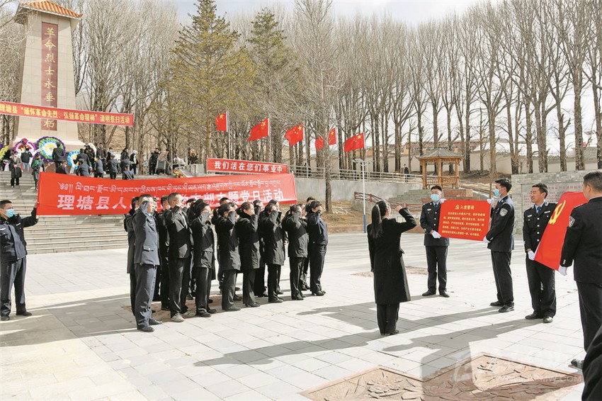 活動結束后,全體黨員重溫了入黨誓詞??刀ㄊ猩窒乐嘘犚话喟嚅L曾廣東表示,此次活動不僅是一次祭掃,更是一次對靈魂的凈化,自己將始終堅守信念、不忘初心、牢記使命,做好本職工作,不辜負黨和人民的重托??刀ㄊ杏芰纸值兰o工委書記洛桑甲措說,作為新時代的黨員干部,要珍惜今天的幸福生活,繼承先烈遺志,傳承紅色基因,促進發(fā)展、服務群眾,以實際行動弘揚烈士精神,以優(yōu)異成績迎接建黨100周年?!拔腋绺鐒⑦h杰烈士的墓現在搬遷到新的烈士陵園,新的烈士陵園規(guī)模宏大、環(huán)境優(yōu)美,更適宜作為英雄烈士的長眠之地。作為烈屬,我十分感謝康定市為烈士們所做的工作,希望更多的人能在這里了解歷史、緬懷英雄、繼承遺志?!绷覍賱⑦h康說。