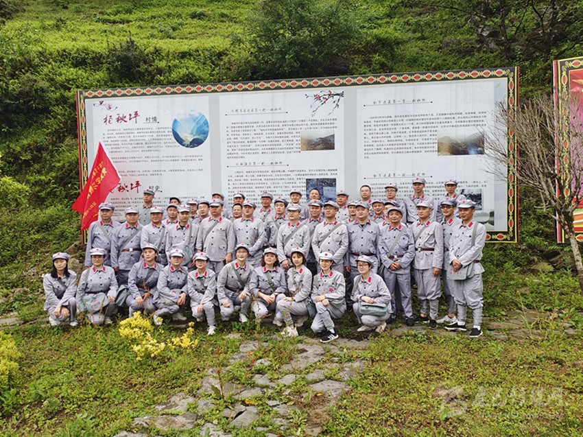 王琴帶著身穿紅軍服裝的游客行進(jìn)在“紅軍小道”上,具有川西民居建筑風(fēng)格的農(nóng)舍掩映在青山綠水間。在紅軍戰(zhàn)士泉水療傷的雕像前,一個鵝卵石壘砌的池子里,溫泉水碧波蕩漾,游客在這里體驗泡腳,凝望著紅軍雕像,仿佛聽到了86年前的槍炮聲。
