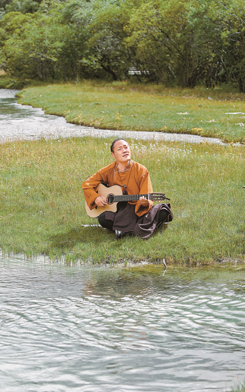 2016年,索郎達(dá)吉受邀成為“稻城亞丁官方旅游大使”。來(lái)到亞丁,他用自己擅長(zhǎng)的音樂(lè)方式來(lái)宣傳推介亞丁旅游,常常抱著一把吉他,在亞丁不同的美景之中隨心演唱,這里的美景也激發(fā)了他的創(chuàng)作熱情。