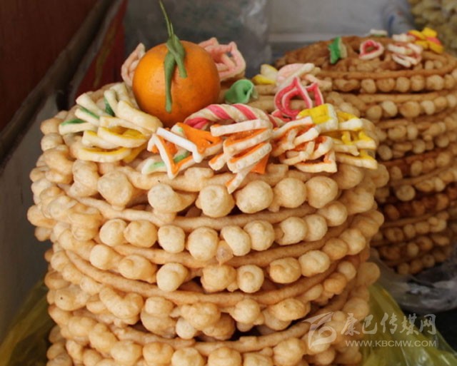 卡賽是藏族人過年必備的美食。用酥油、菜油、豬油等炸成多種面食,類似麻花、油條之類。多在藏歷年時食用。分為耳朵形、蝴蝶形、條形、方形、圓形等各種形狀,涂以顏料,裹以砂糖。既是裝飾神案的藝術(shù)品,又是款待客人的佳肴?!翱ㄙ悺钡钠贩N花色常常成為女主人勤勞、智慧和熱情的象征,在節(jié)日里分外引人注目。