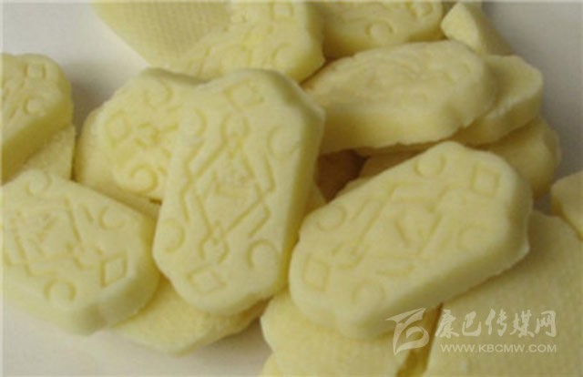 藏族酥酪糕是藏族的著名糕點,在藏族同胞的家里常用作款待客人的美味點心。而且它本身具有很好的保健功效,能夠在品嘗美食的同時又滋補身體。藏族酥酪糕食用起來奶味濃郁,十分受到不同年齡及族群的喜愛,其中還有多種對身體十分有益的材料,例如西藏人參果就是一種純天然無污染的滋補食品。酥酪糕是用提取過奶油后的乳白色淀粉(藏名曲熱)晾干后,用磨磨成粉末,拌入黃油(奶油)、白糖、角麻(人參果)、葡萄干、桃仁等,做成橢圓形、方形,表面有紅絲綠絲擺成圖案,表現(xiàn)吉祥、長壽,放入籠屜內(nèi)蒸熟,賓至可整塊獻上,或切成片狀。據(jù)說它有滋補強身之功效。