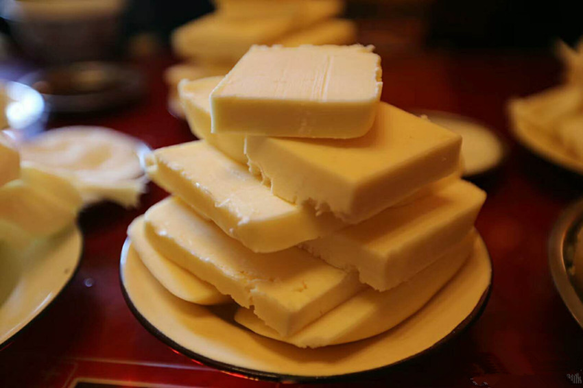酥油是藏族民眾主要的食用油脂。藏族諺語說:“沒有駿馬的草原不美,沒有酥油的糌粑不香?!辈刈迕癖姶蛩钟筒琛⑷圄佤味茧x不開酥油。據(jù)史料記載,文成公主入藏時,帶去了內(nèi)地的茶葉,公主“使乳變成奶酪,從乳取酥油”,有了茶和酥油,才有了酥油茶。
