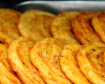 康定鍋魁別具風(fēng)味,馬市上清真寺對面,文昌廟(原回小校舍處)坎下鄭家的鍋魁全城聞名。品種有混糖鍋魁、油旋子、方方酥、糖鍋魁等,香酥甜俱佳,至今讓人回味。當(dāng)年福音堂(在今州委地段)前有小院壩,下接老陜街,常年有喇嘛三五或二三十坐于街沿,面前置二三大鍋魁售賣。人稱此為“貢加肆”(藏語賣鍋魁地),其鍋魁泡而微甜可口,不少人前往購食。還有“陜鍋魁”,爐城聞名。是一個(gè)操陜西口音的五十開外漢子,背一背大餅,沿街叫賣:“陜鍋魁”。其大餅軟嫩,綴以蔥花,入口清香喜人,北方大餅,素享盛名,“陜鍋魁”盡得其妙。人們聞其陜音,都去購買。